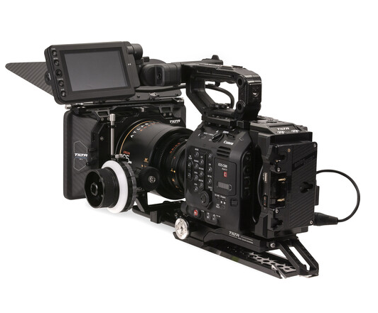 The Tilta ES-T19-C-AB Kit C transforms the C300 Mark III or C500 Mark II into a fully rigged shoulder camera in minutes. The lightweight yet rock-solid aluminum cage provides full protection and mounting points, while the Gold-Mount plate (with 3× D-Tap, 2/3-pin LEMO, USB) powers the camera and all accessories from a single battery. The quick-release baseplate offers ARRI rosettes, front/rear 15 mm LWS rods, and VCT-14 compatibility via the included extension and 10″ dovetail. The carbon-fiber MB-T12 matte box clamps on instantly (80–134 mm adapters included) with three 4×5.65″ fixed trays and full hard-matte set and the FF-T03 follow focus delivers smooth, hard-stop precision. Perfect for documentary, ENG and narrative crews who want a fast, balanced, cable-managed rig straight out of the case.