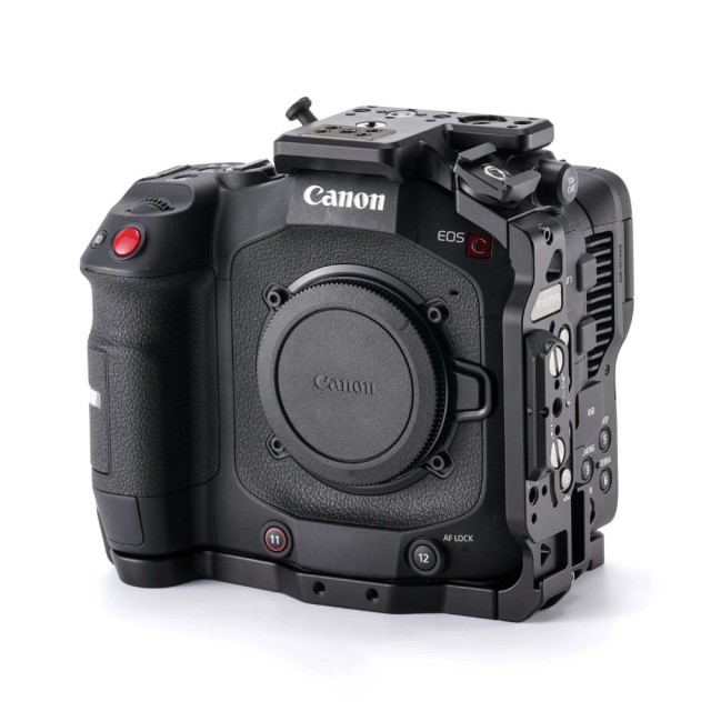 This cage provides additional protection for the Canon C80 camera body while expanding the mounting options for various accessories.