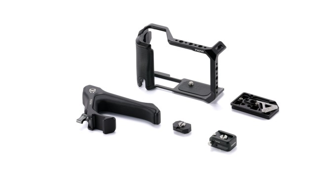 The design includes an integrated grip with a rubber grip that conforms to the shape of your palm, making it more comfortable to hold the camera in your hand than with a traditional cage.