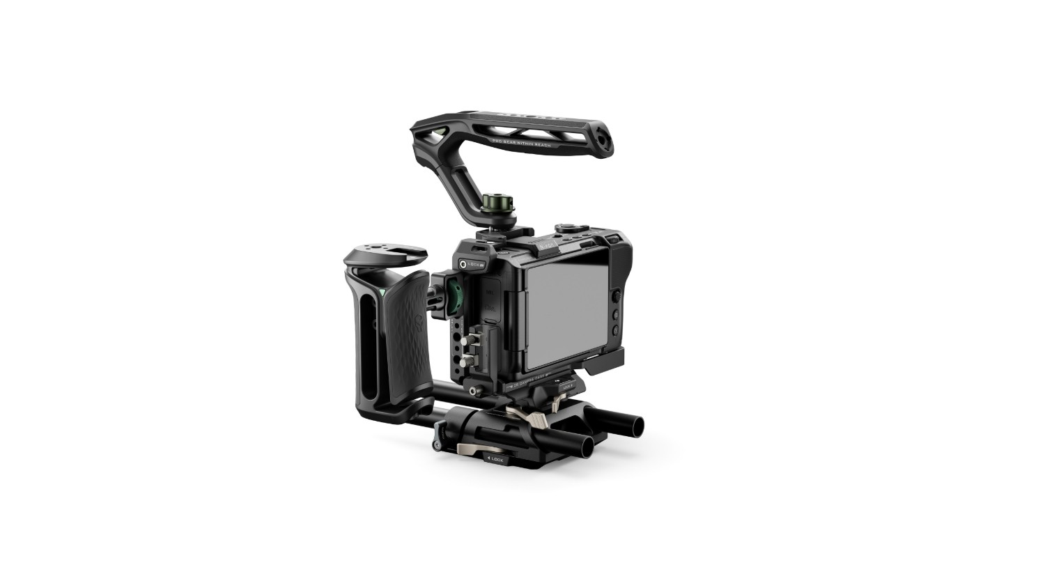 The basis of this kit is a full camera cage, which provides better protection for the Nikon ZR camera body and also serves as a solid base for attaching additional accessories.