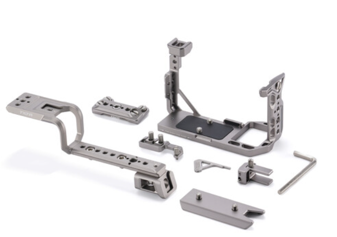 The Tilta TA-T88-A-TG Lite Kit transforms the compact Sony FX2 into a fully professional cinema rig without adding unnecessary bulk. This comprehensive package includes a form-fitting full cage with integrated side NATO rail and cold shoe, a removable bidirectional baseplate that supports both DJI RS gimbal quick-release and standard Arca-Swiss tripods, an XLR-H1 top-handle extension bracket that restores mounting real estate when using Sony’s XLR unit, plus dedicated HDMI and USB-C/Multi cable clamps to prevent port damage. Every thread features anti-twist locating pins, and the open skeletal design guarantees zero obstruction to buttons, battery door or articulating screen. Finished in sleek titanium gray aluminum, the entire 160 g (cage only) system strikes the perfect balance between mobility and big-production expandability.