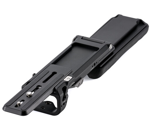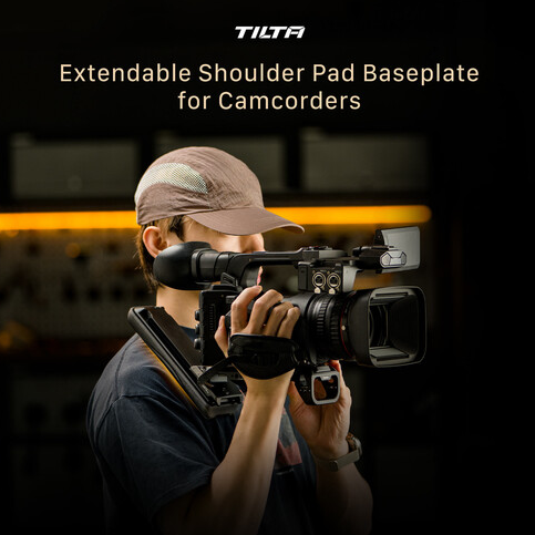The Tilta TA-ESB-B Extendable Shoulder Pad Baseplate is a versatile baseplate designed for camcorders, featuring a Manfrotto-type quick release plate, adjustable shoulder pad, and multiple mounting points for accessories. It provides optimal chest support and camera balancing for handheld shooting.