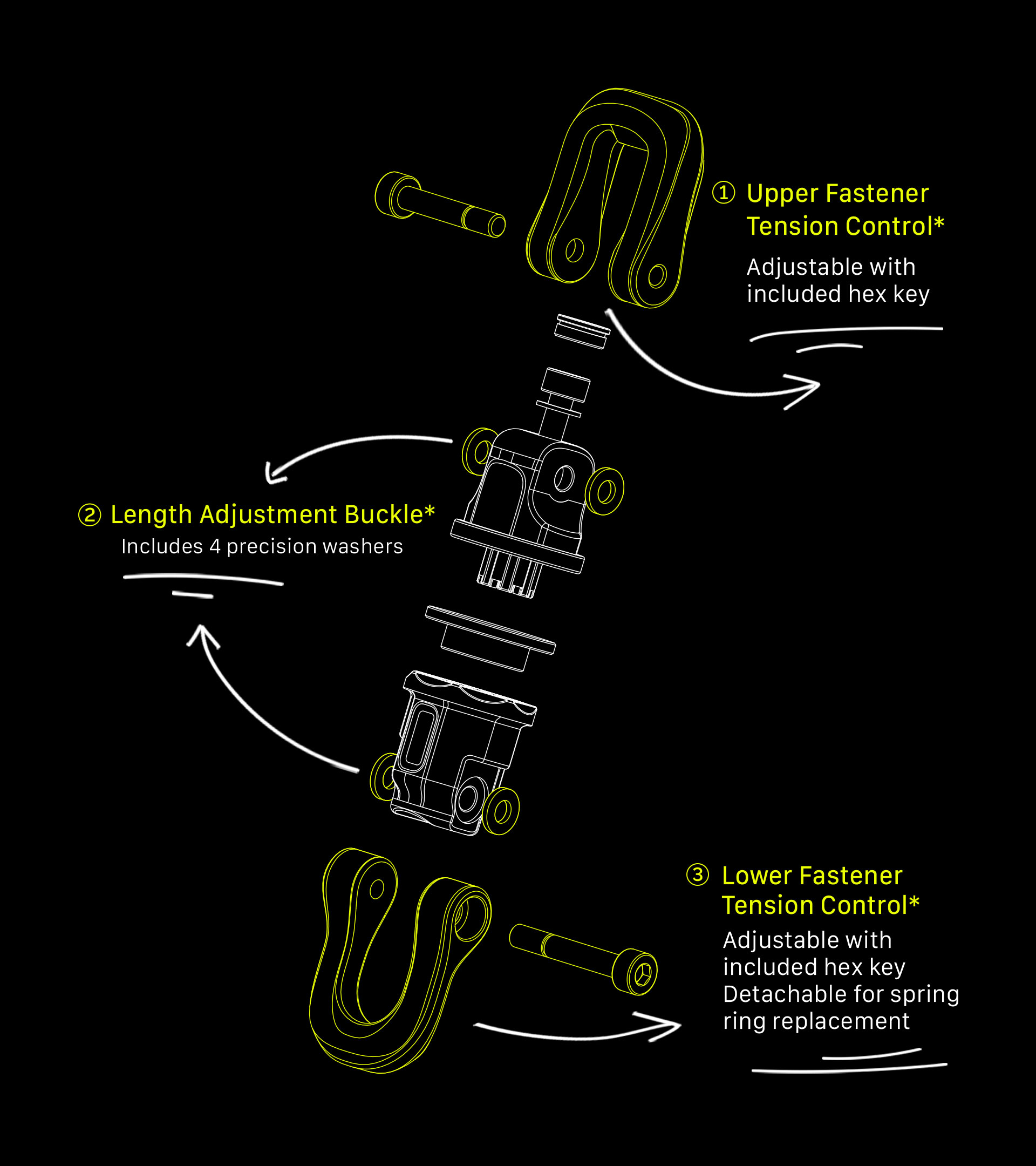 An intuitive buckle makes adjusting the length easy and quick for various configurations and advanced magnetic quick-release clasps utilize Fidlock HOOK quick release technology for extreme flexibility.