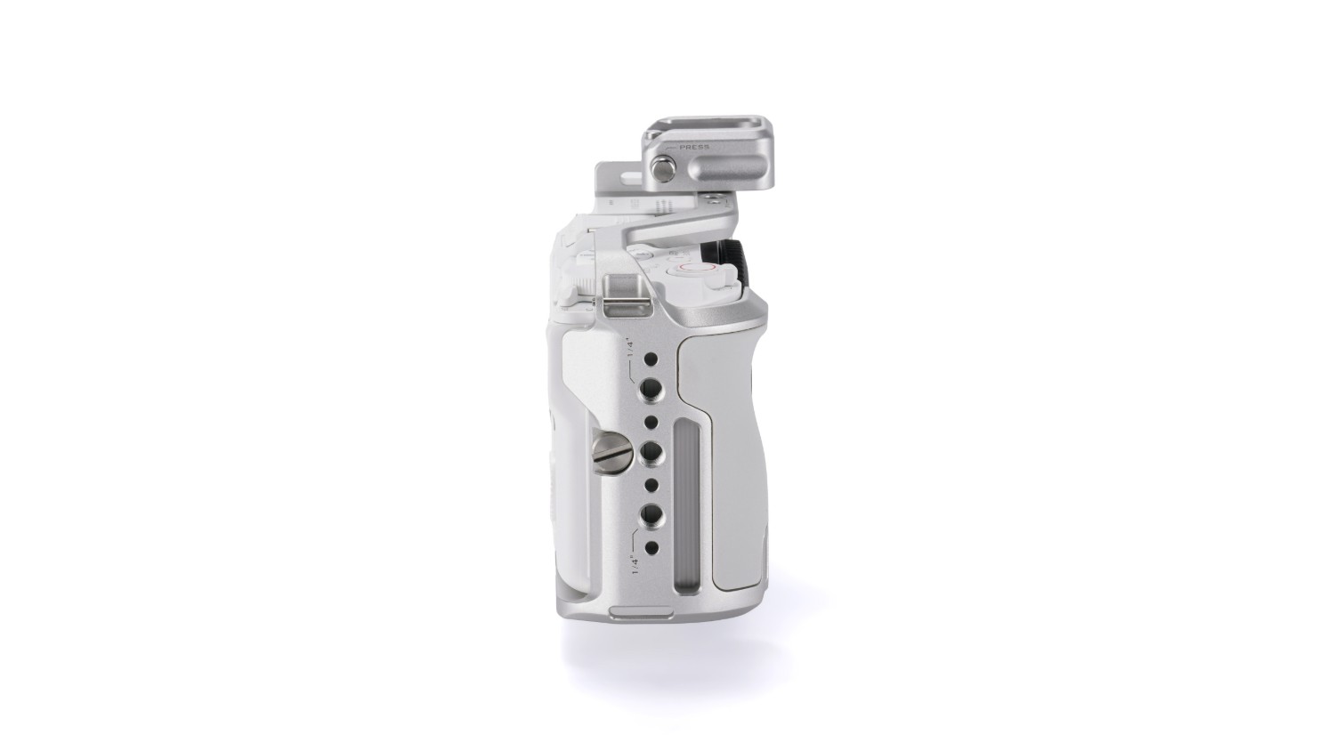 This camera cage serves as an extra layer of protection for your camera body while also accommodating a wide range of external accessories via multiple mounting options including a Cold Shoe Receiver, NATO Rail, and ¼”-20 threads with locating points.