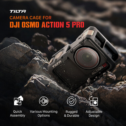 The Tilta TA-T72-FCC-TG Full Camera Cage (Titanium Gray) is a rugged, shoot-ready protective frame for DJI Osmo Action 5 Pro/4/3 that adds magnetic filter support, dual-side quick-release for instant battery swaps, a top cold shoe, side 1/4"-20 thread and full compatibility with Tilta’s magnetic baseplate and action filters – all in a lightweight…