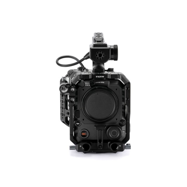 Replacing the camera’s original rear mounting plate, the cage adds multiple threaded mounting points for accessories such as wireless transmitters, power modules, and external monitors.
