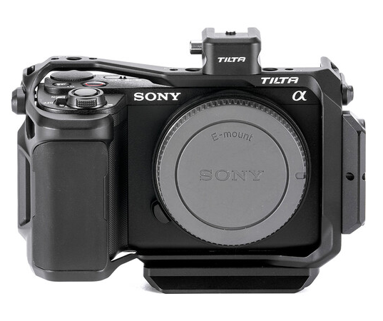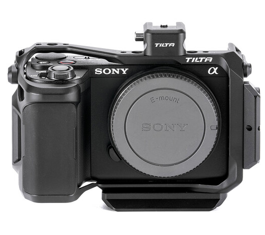 The TA-T69-FCC-B transforms the tiny Sony ZV-E10 II into a fully capable cinema/vlog workhorse without adding bulk. The form-fitting cage wraps the camera completely yet leaves every port, button, battery door, and flip-screen unobstructed. A soft-touch silicone handgrip is molded directly into the right side for comfortable all-day handheld shooting, while the baseplate compatibility includes both Arca-Swiss quick-release and DJI RS-series gimbal plates (RS 3 Mini, RS 4, etc.). Top and side plates are removable for an even lighter stripped-down setup, and extensive anti-twist mounting points plus a full-length NATO rail and cold shoe allow instant attachment of mics, lights, monitors or the optional Tilta cooling module. At only 94 g, it’s the perfect balance of protection, ergonomics and expandability for content creators who demand pro features on Sony’s smallest vlog camera.