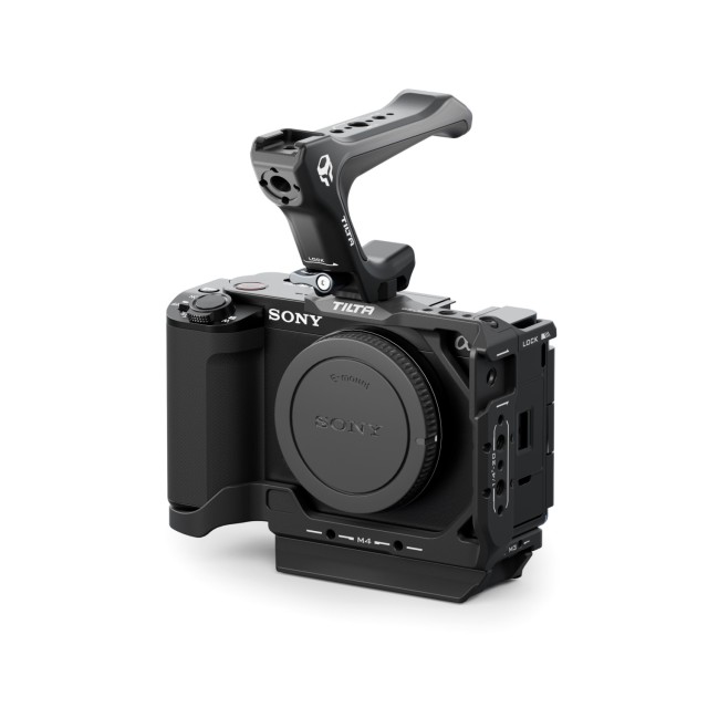Half Camera Cage for Sony ZV-E1 Lightweight Kit. This half cage supports a wide range of external accessories while maintaining a small footprint via multiple mounting options including a Cold Shoe Receiver, NATO Rail, M3 Threads for Lens Support and ¼”-20 threads with locating points.