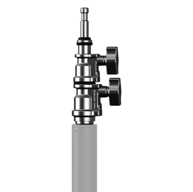 The Tilta TC-HBS-S Heavy Duty Baby Pin Stand is purpose-built to expand the functionality of the Tilta Boulder Camera Cart, offering a strong and reliable mounting point for professional accessories. Designed to mount directly into any of the four corner slots on the cart’s top tray, this stand can be installed or removed completely tool-free, allowing for quick reconfiguration on set.