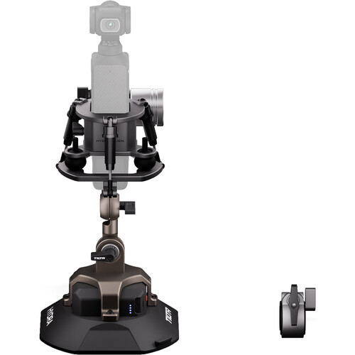 Made from aerospace-grade aluminum alloy and precision CNC-machined, the kit weighs only 2.6 kg. Its hydraulic damping system uses automotive-grade damping oil, ensuring professional-level stabilization by reducing micro-vibrations. The included electronic suction cup actively monitors pressure and adjusts suction automatically, running on a 2000mAh battery for up to 14 hours.