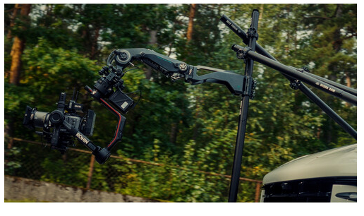 Power is supplied via a dual V-mount battery plate, delivering reliable energy to both the system and mounted gimbal. The built-in OLED touchscreen display provides real-time control and monitoring of damping tension, payload mode, battery status and wireless signal. Additionally, users can wirelessly adjust damping and payload settings using the optional Tilta Nucleus Nano 2 from up to 328 feet away. With enhanced safety features, DJI Ronin compatibility and rugged aluminum construction, the Hydra Alien Pro is a complete solution for professional car-mounted cinematography.