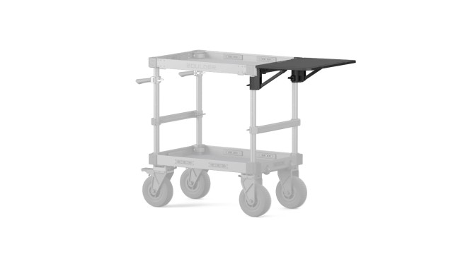 Once attached, the expansion plate can be quickly folded up or down, making it ideal for on-set workflows where space efficiency and rapid reconfiguration are critical. The side table features an IGT standard cutout, enabling compatibility with a wide range of IGT inserts—including baskets, cutting boards, gas stove tops, and other modular accessories—transforming the cart into a multi-purpose workstation.