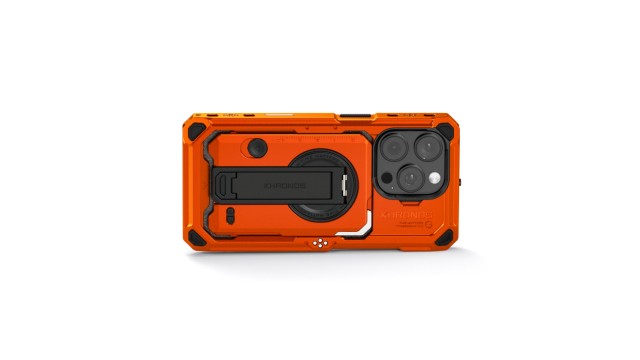 The Khronos case features integrated electronic contact points throughout, allowing you to pass power through the cage to power your accessories when using an optional Power Handle. New to the 16 is the camera control touch bar which allows users full access to the touch bar functionality on the iPhone 16.