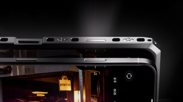 The Khronos case features integrated electronic contact points throughout, allowing you to pass power through the cage to power your accessories when using an optional Power Handle. New to the 16 is the camera control touch bar which allows users full access to the touch bar functionality on the iPhone 16.