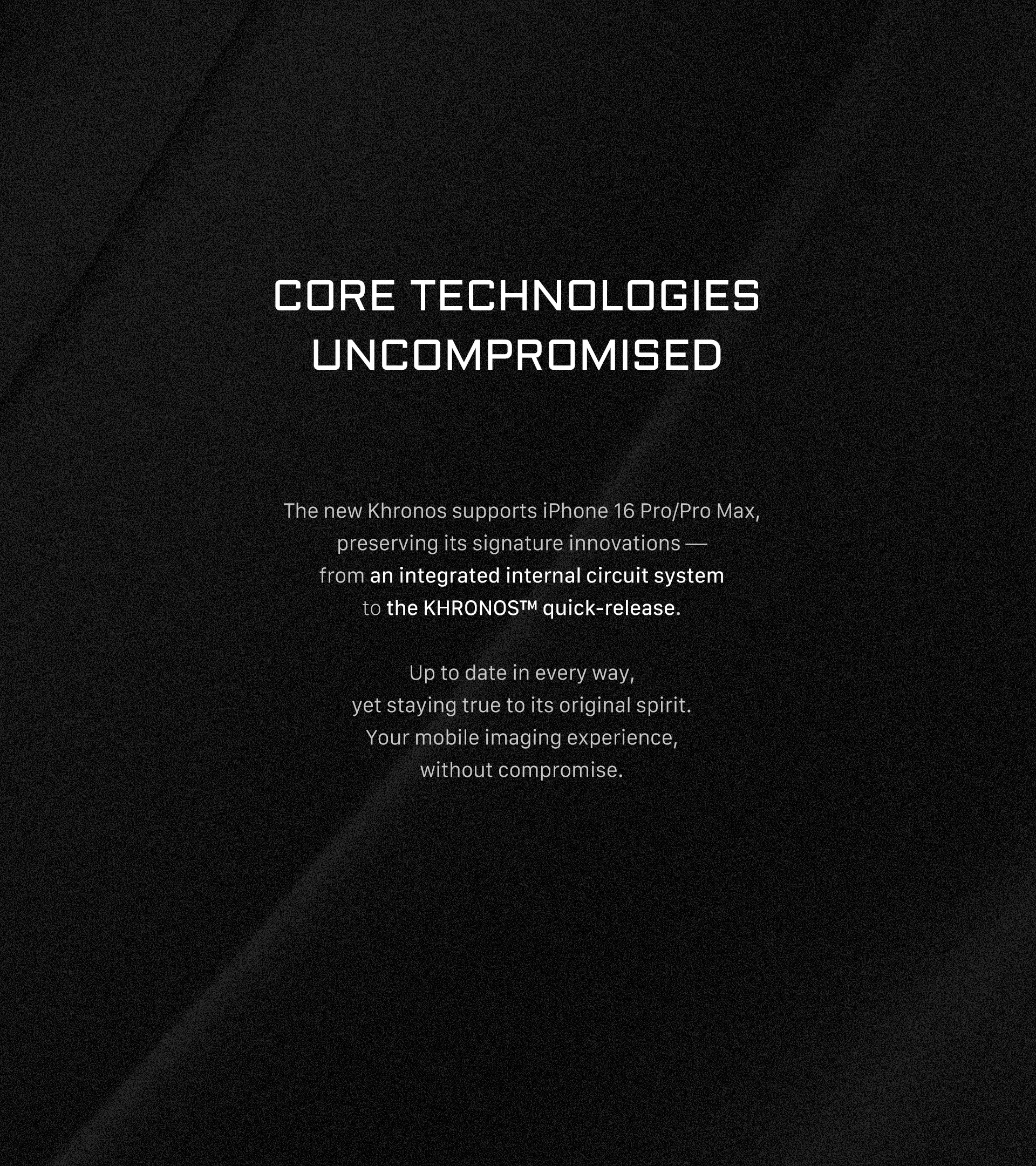 Experience filmmaking like never before with the Khronos iPhone 16 Pro / Pro Max Case – where innovation meets passion.