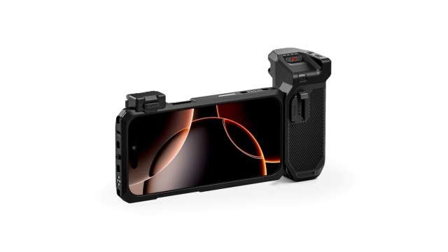 The Handle connects to an iPhone 16 via an integrated USB-C cable and uses bluetooth to control focus or zoom via the dial on the front of the handle. This also provides more stability when operating the system and the record button ensures users do not need to let go of the handle to start recording.