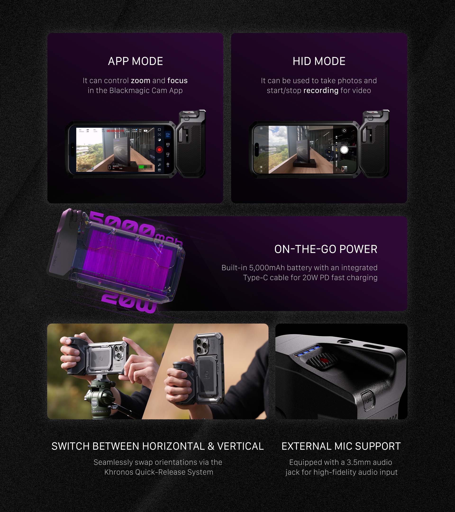 Gain exclusive Blackmagic App control via Khronos Focus PD Handle for iPhone