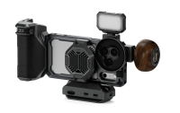 The Tilta Khronos iPhone 17 Pro Ultimate Kit transforms your smartphone into a comprehensive cinematic camera system. Custom-designed for the iPhone 17 Pro (and Pro Max), the foundation is the robust Khronos case featuring a quick-release snap-in design and integrated electronic contact points for passing power through the cage to attached accessories.