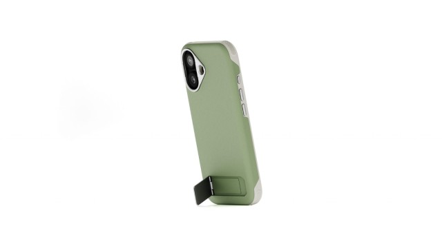 The Tilta Khronos Lite iPhone 17 Case in Light Green is a lightweight, professional-grade protective case designed for the iPhone 17. Featuring an integrated kickstand for vertical and horizontal use, magnetic connections for accessory attachment, and reinforced corners with a metal lens frame, it offers enhanced protection and versatile accessory compatibility in a compact design.
