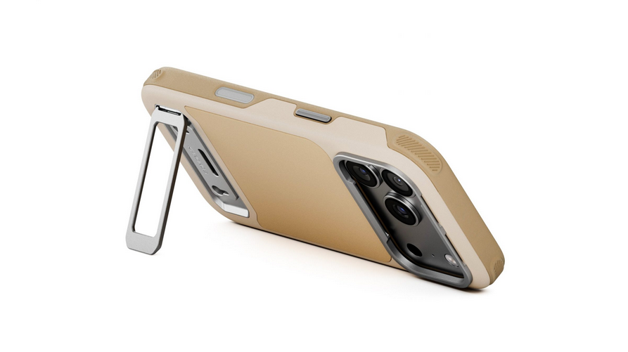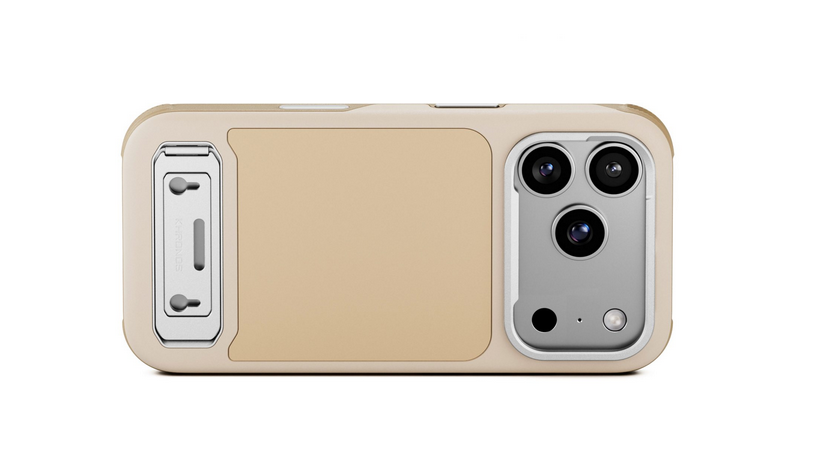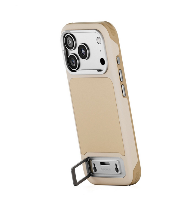 The Tilta Khronos Lite iPhone 17 Pro Case (Champagne) delivers professional performance in a lighter form factor. It includes an integrated vertical and horizontal kickstand for viewing, a powerful magnetic back plate to quickly attach accessories (Card Holders, SSDs, Lights), and capacitive touch passthrough for responsive camera control.