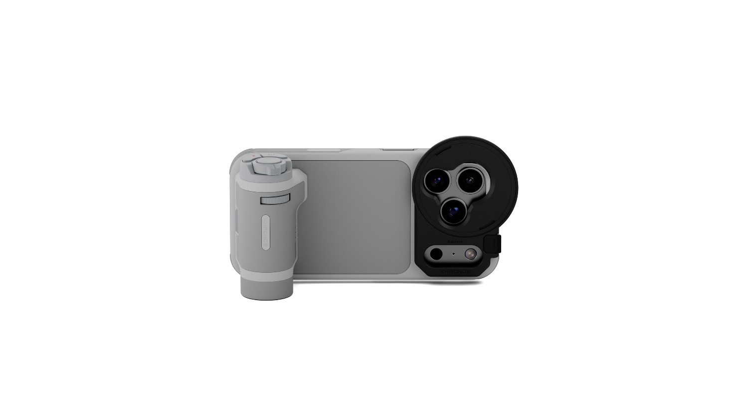 The Khronos Lite iPhone 17 Pro Handheld Kit provides filmmakers and content creators with a streamlined solution for elevating smartphone videography. Custom-designed for the iPhone 17 Pro, the kit features a lightweight case and a newly designed ergonomic handle that mounts directly to the case's kickstand. This mounting design allows the handle to communicate with the smartphone via Bluetooth, keeping the iPhone's USB-C port free and enabling control over Focus, Zoom, Shutter, and Recording via the Black Magic Camera App. The case includes a built-in kickstand that supports both horizontal and vertical orientations for hands-free use. Furthermore, the magnetic back plate supports magnetic accessories such as LED lights, SSDs, power banks, and cooling fans. The included 58mm Filter Tray allows for the use of various 58mm third-party filters for comprehensive creative and exposure control.
