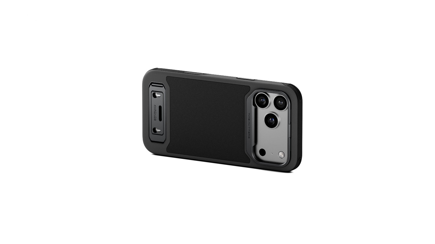 The Tilta Khronos Lite Case in Black is a lightweight, professional-grade protective case for the iPhone 17 Pro Max. It features a built-in kickstand for hands-free viewing, a magnetic back plate for accessory attachment, and reinforced protection for the camera and corners.