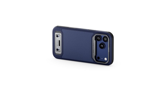 The Tilta Khronos Lite iPhone 17 Pro Max Case (Navy Blue) offers professional functionality in a lightweight, protective design. It features a versatile built-in kickstand for vertical and horizontal viewing, a magnetic back plate for quick attachment of accessories (SSDs, lights, power banks), and capacitive touch passthrough for the camera control button.