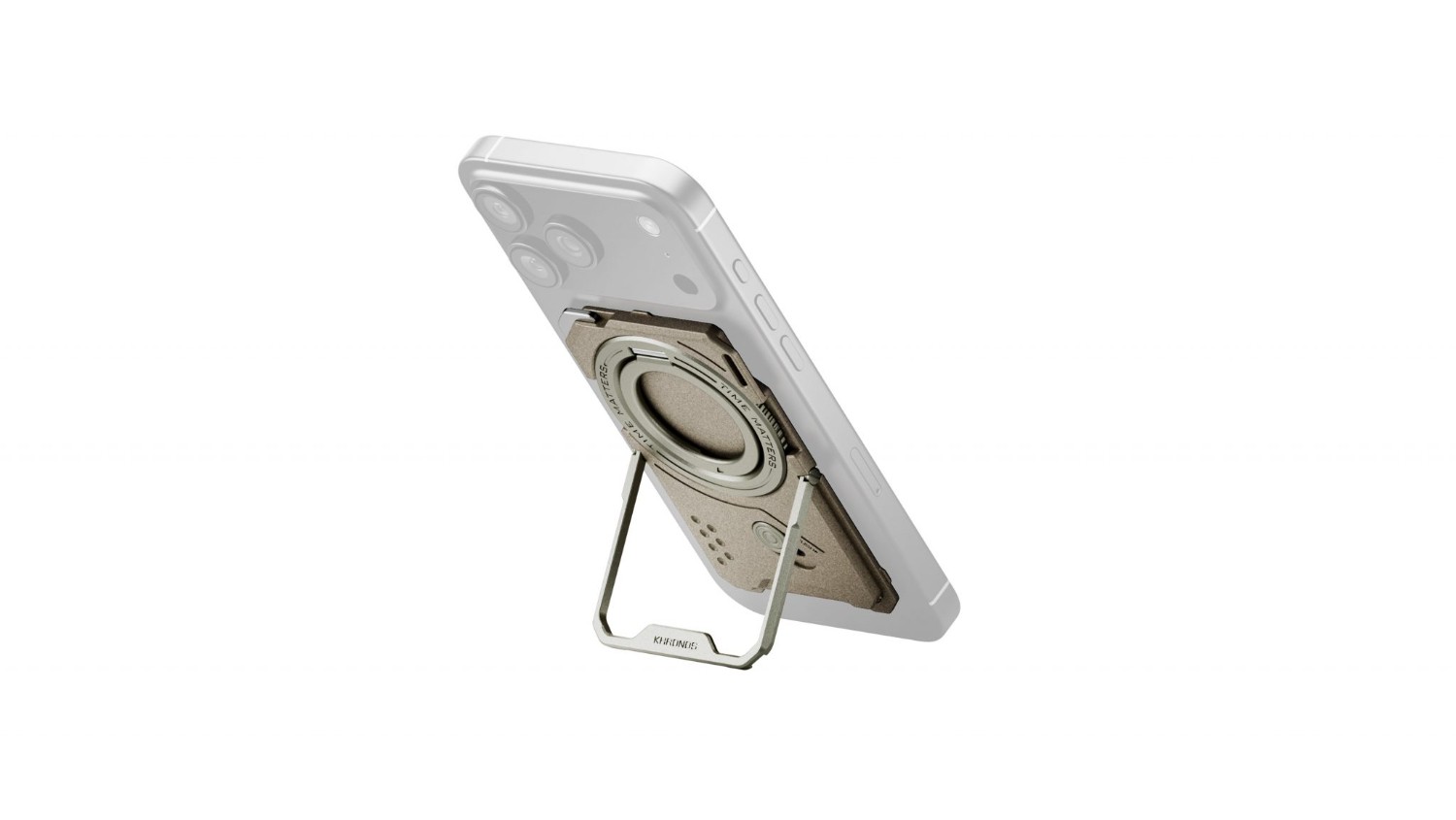 The Tilta Khronos Multi-Functional Magnetic Backplate in Beige is a versatile accessory designed for iPhone 15, 16, and 17 Pro/Pro Max models. It offers a no-case-needed magnetic connection, an adjustable kickstand for stable horizontal and vertical positioning, and compatibility with other magnetic accessories, enhancing mobile filmmaking and everyday smartphone use.