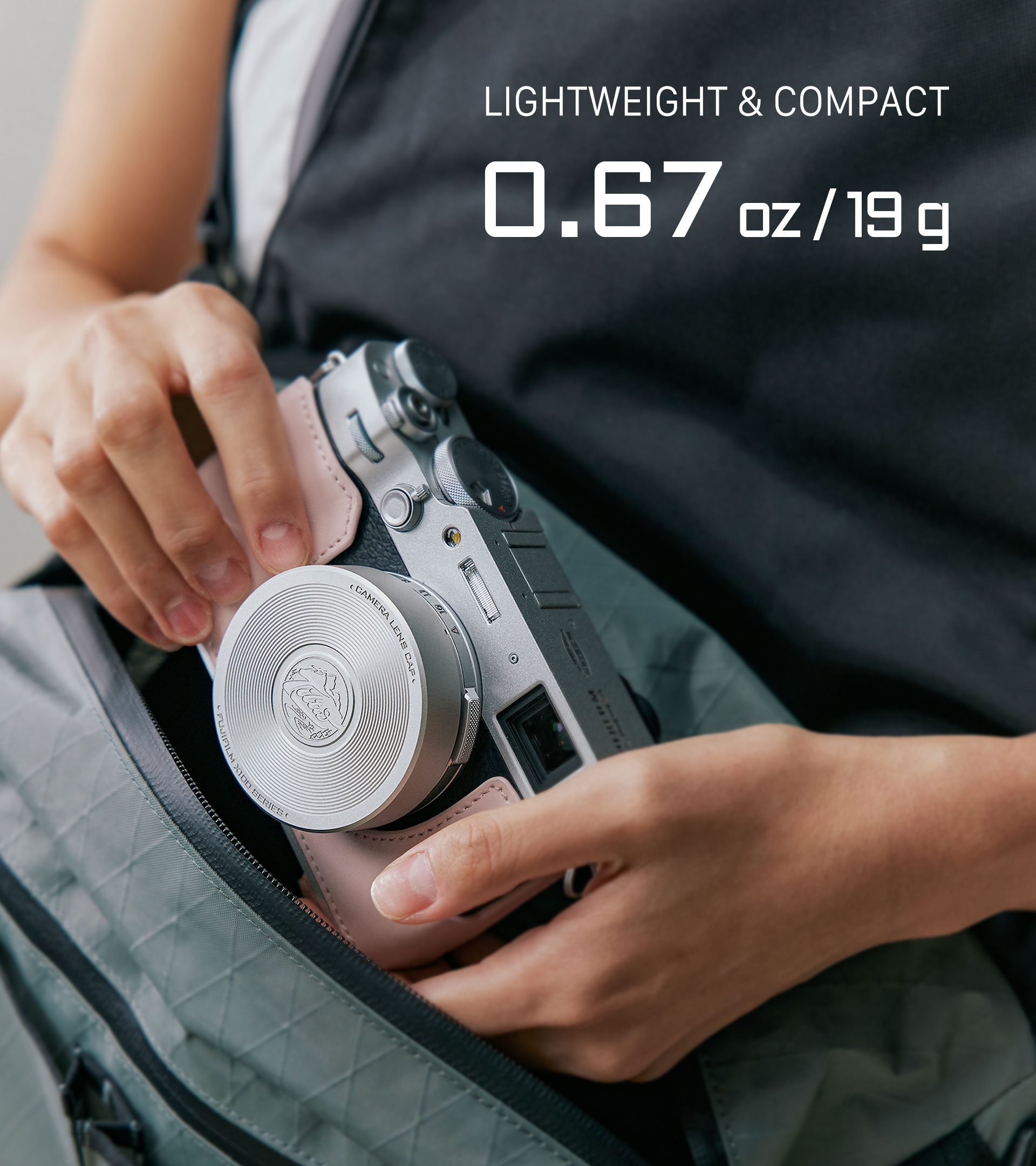 Weighing just 0.67oz (19g), this lightweight yet durable cap is designed to seamlessly fit and protect your camera’s lens.