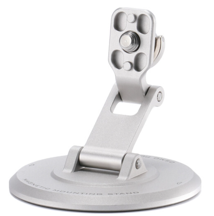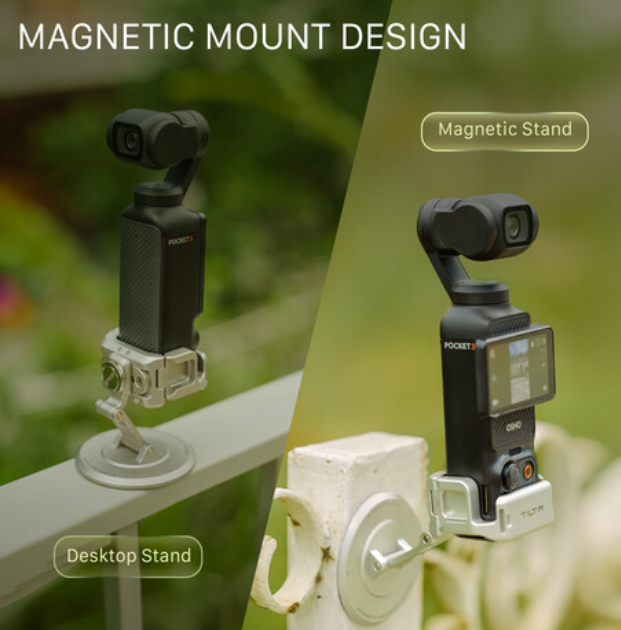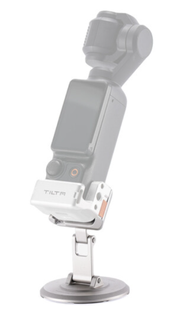 The Tilta TA-T65-MMS-TW is a beautifully finished titanium-white aluminum mounting solution that dramatically expands the positioning possibilities of the DJI Osmo Pocket 3. Using DJI’s built-in magnetic connector, the Pocket 3 snaps securely onto the stand’s top plate in milliseconds, while the base features a female 1/4"-20 thread for mounting on mini tripods, clamps, suction cups, or any standard support. Two smooth points of articulation deliver 270° of tilt on the upper axis and 180° on the lower axis, allowing everything from extreme low-angle shots to overhead product work or creative car-mount perspectives.