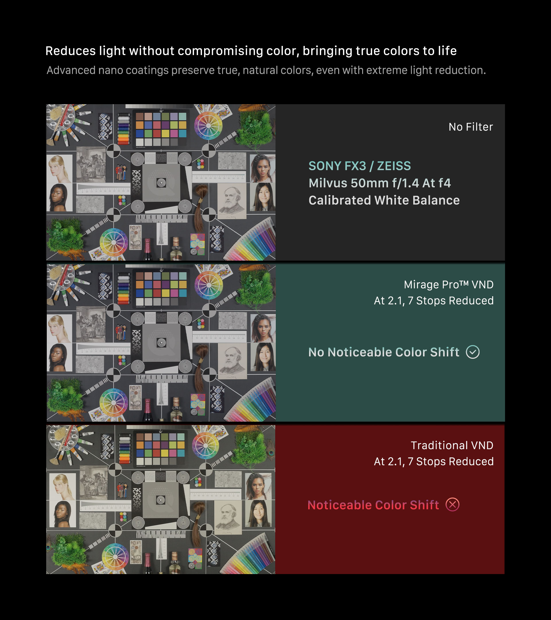 The VND Kit includes a 114mm Variable ND Filter that reduces 1 to 7 stops of light. This allows users to control exposure with ease and precision.
