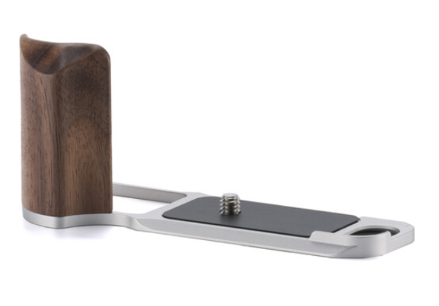 The Tilta TA-T91-WG-S Mounting Baseplate with Wooden Grip (Silver) is an elegant L-shaped aluminum and walnut wood handgrip system crafted exclusively for the FUJIFILM X-E5, combining classic silver aesthetics with superior ergonomics, full Arca-Swiss compatibility (plate sold separately) and unobstructed access to all controls and the battery door for a perfect blend of retro style and modern functionality.