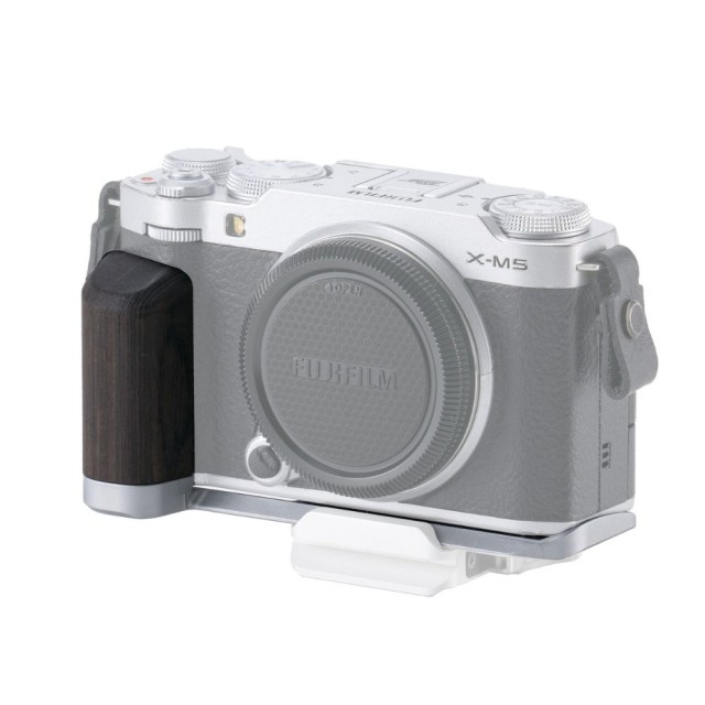This L-shaped accessory features a walnut wood grip for more comfortable handling and holding of the Fujifilm X-M5.