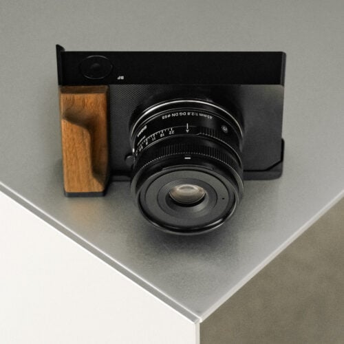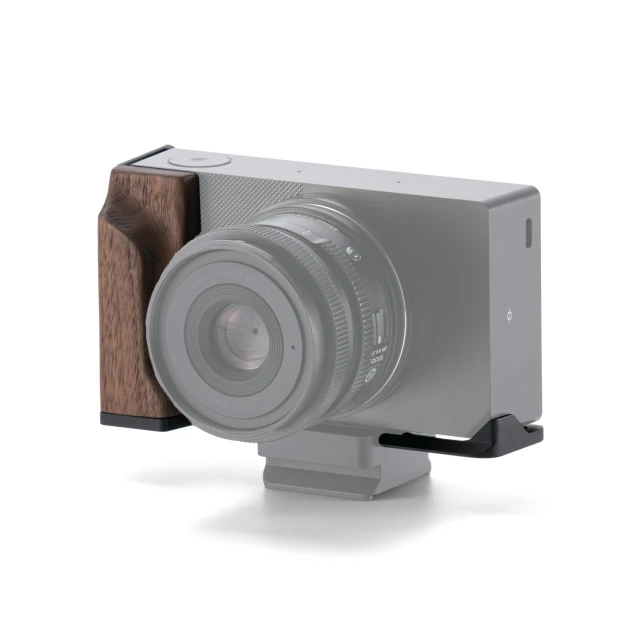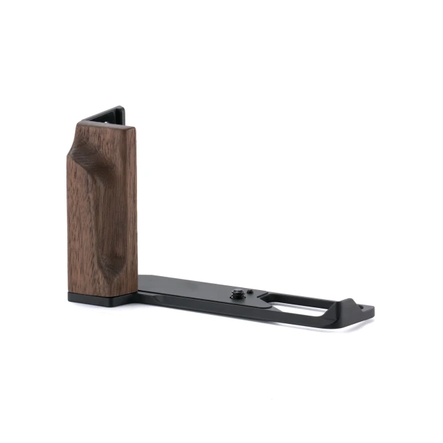 Introducing the Mounting Baseplate with Wooden Grip for the Sigma BF. The foundation of this L-Bracket shaped accessory is a Wooden Handgrip, crafted from Walnut Wood. This provides a more comfortable way to operate and handle the camera while still remaining compact and travel friendly.
