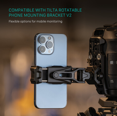 The Tilta TA-PMB5-NT-B NATO Adapter is a lightweight, quick-release connector that instantly transforms the Tilta Rotatable Phone Mounting Bracket V2 into a NATO-rail-compatible smartphone holder – perfect for snapping your phone (as a director’s monitor, wireless receiver display, or gimbal counterweight) onto any standard NATO rail in seconds with zero twist thanks to dual ARRI locating pins.