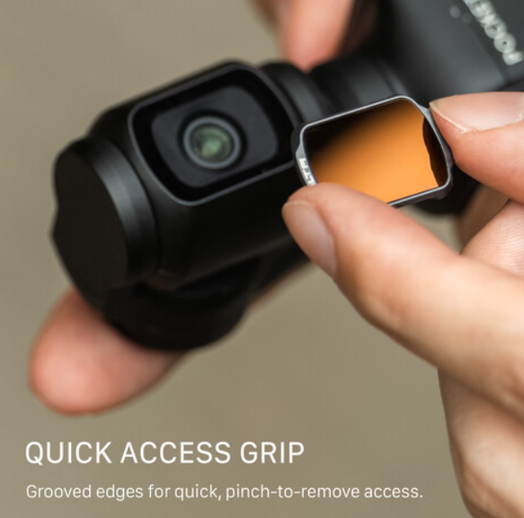 The Tilta TF-OP3-ND15 is a precision 5-stop (ND1.5 / ND32) neutral-density filter custom-designed for the DJI Osmo Pocket 3, crafted from multi-coated optical glass with an ultra-slim magnetic ring that snaps on instantly, stays on during gimbal retraction and calibration and features grooved edges for quick removal—perfect for controlling motion blur and exposure in bright sunlight without vignetting or color shift.
