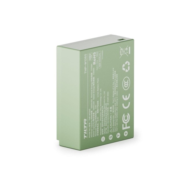 The Tilta NP-W126S Battery with USB-C Input in Ash Green is a high-capacity lithium-ion power solution engineered for professional photographers and videographers. Featuring a 1050mAh capacity at 7.4V, this battery delivers 7.8Wh of energy, providing extended runtime for demanding shoots. Its high-energy-density cell ensures hundreds of photos or over an hour of video recording on a single charge, meeting CIPA standards for reliability.