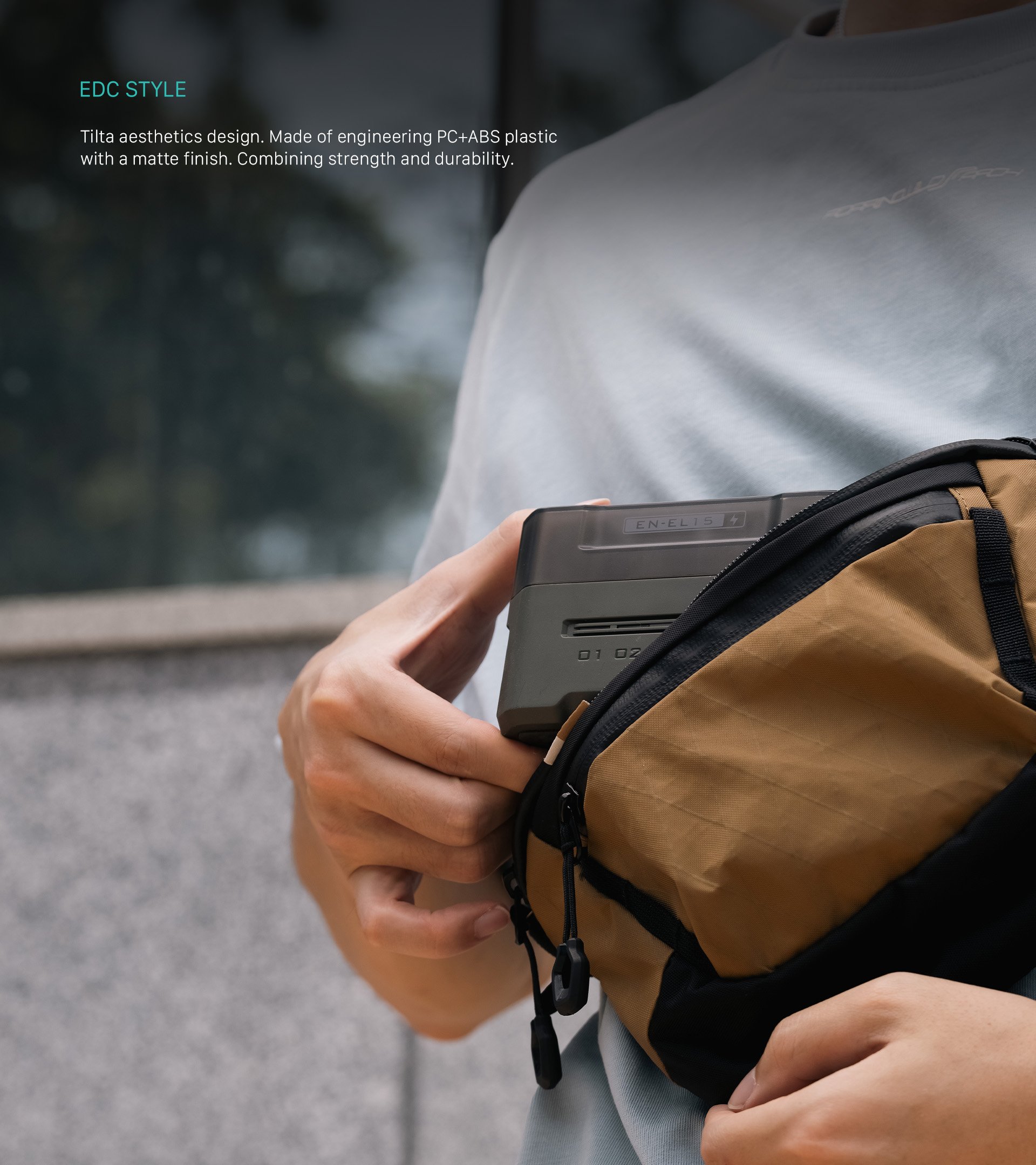 The Tilta Portable Charging Station features an EDC-style design with Tilta’s signature aesthetic, making it a stylish and functional addition to your gear.