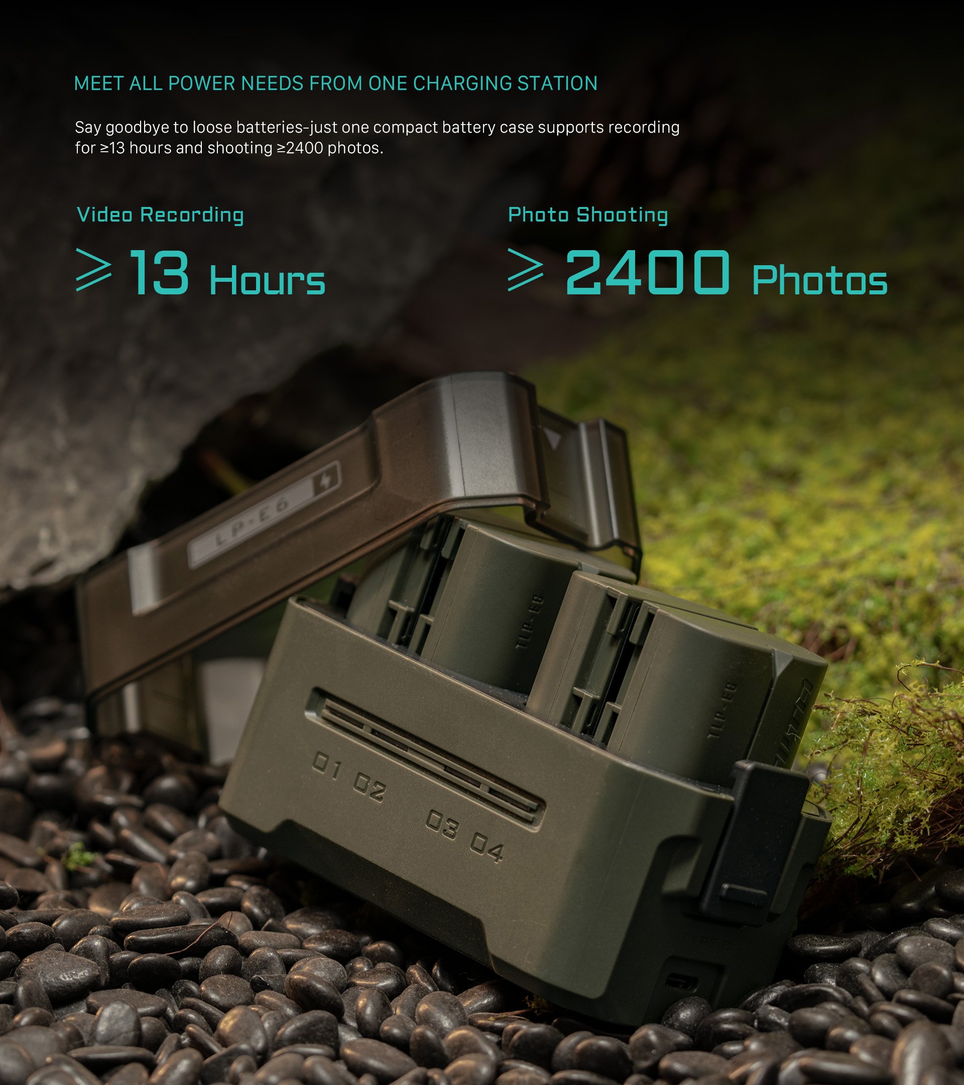 With the ability to fully charge four LP-E6 batteries, users will be ready for up to 13 hours of video recording or enough power to handle 2,400 photos, perfect for long shooting sessions.
