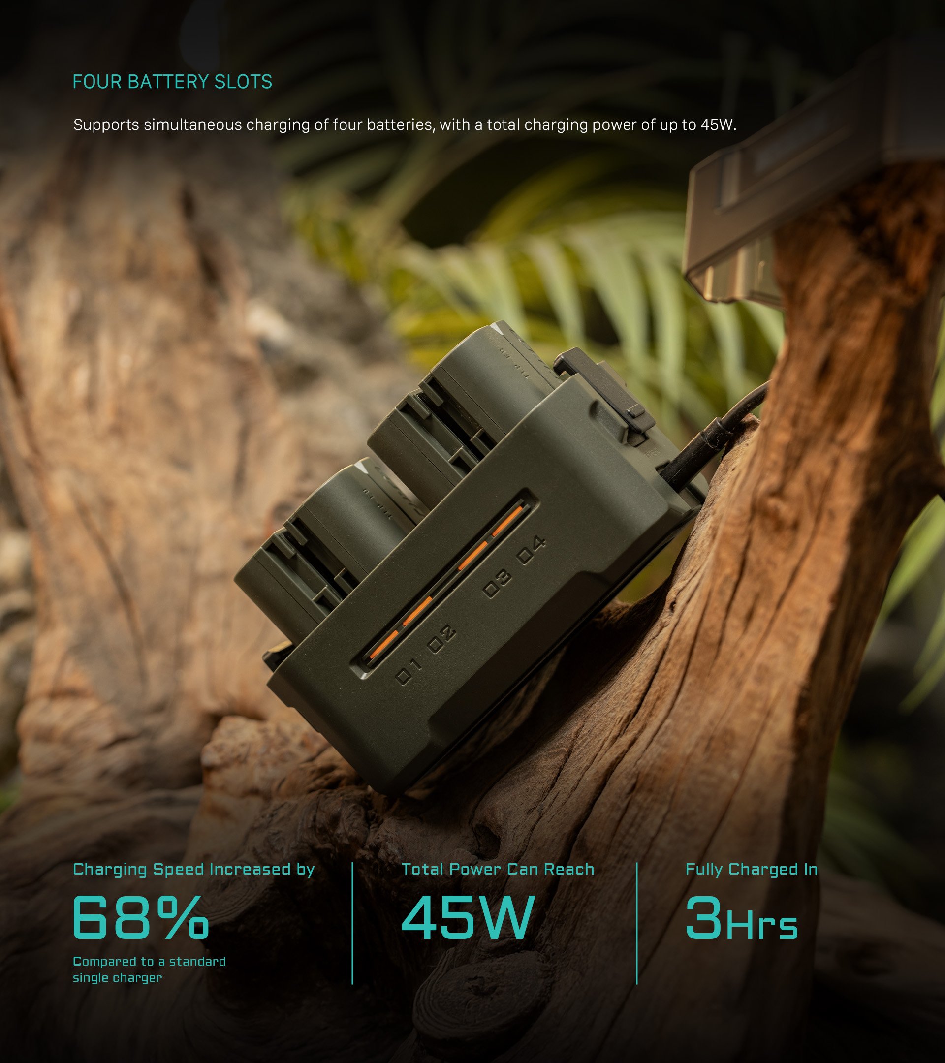 Equipped with 45W PD Fast Charging, it delivers an impressive 68% faster charging speed than a standard single charger, ensuring your batteries are ready for action in just 3 hours.