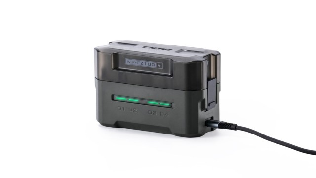 This compact charging station is designed for NP-FZ100 batteries from Sony and third-party manufacturers. The charging station offers four slots for easy charging and its compact size makes it convenient to carry.