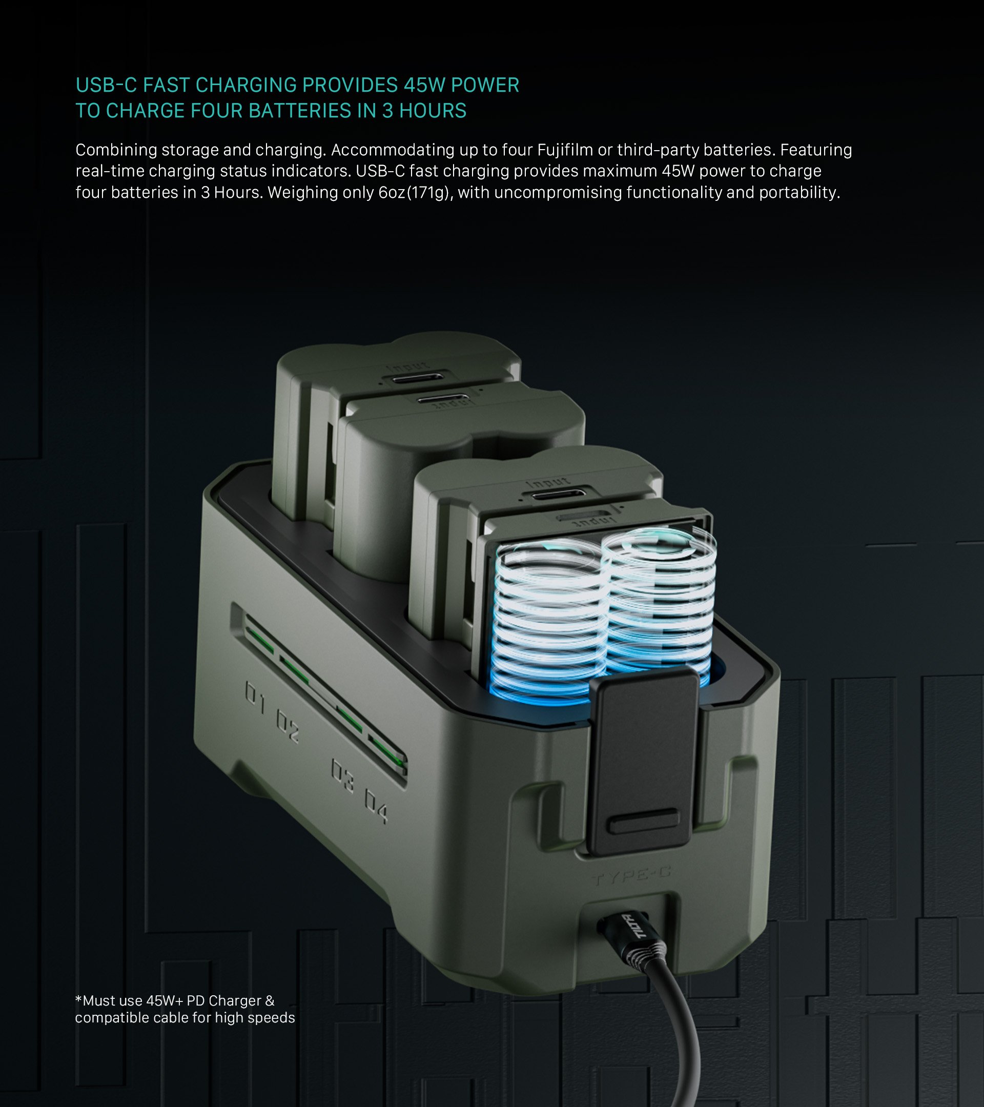 Equipped with 45W PD Fast Charging, it delivers an impressive 68% faster charging speed than a standard single charger, ensuring your batteries are ready for action in just 3 hours.