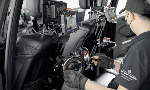 The Tilta Rear Seat Monitor Mounting Bracket Pro is designed for securely supporting large monitors and controllers in the back seat of a camera car. It attaches to the headrest and features a long, floor-bracing plate for additional stability. The top includes an articulating 1/4″-20 mounting point for monitors and an integrated V-Mount Battery Plate for powering devices. This heavy-duty bracket is ideal for mounting larger control systems like DJI’s Master Wheels.