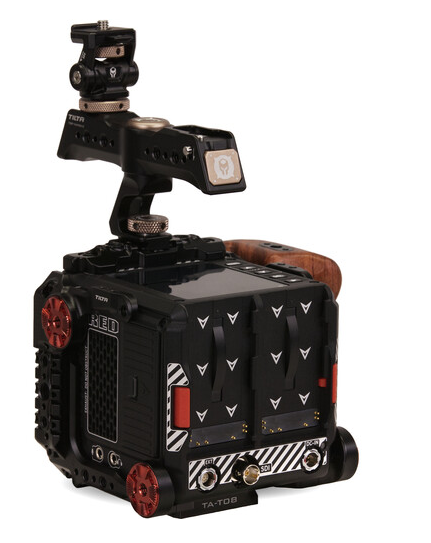 The Tilta RED KOMODO Kit C provides a comprehensive camera rig solution with a full camera cage, right-side NATO wooden handle, rotating top handle, tiltable monitor mount and Arca/Manfrotto quick release plates. Designed for the RED KOMODO, this black kit offers multiple mounting points, rosettes and 1/4"-20 and 3/8"-16 threads for professional gimbal balancing and accessory integration.