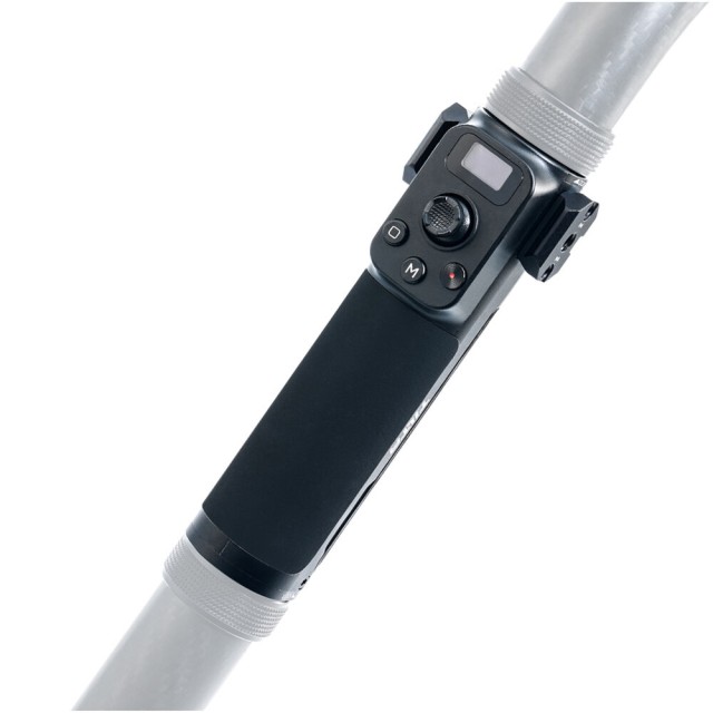 Wirelessly control your Ronin RS 2 or RS 3 Pro gimbal from a handle mounted on the Advanced Support Ring or Dual Handle Power Supply Bracket with the Tilta RS 2 Remote Control Handle. The kit features a wireless control handle that mounts on your Advanced Ring, allowing you to control the gimbal without taking your hand off the support ring. The handle lets you access your gimbal's settings, as well as the photo and video record functions.