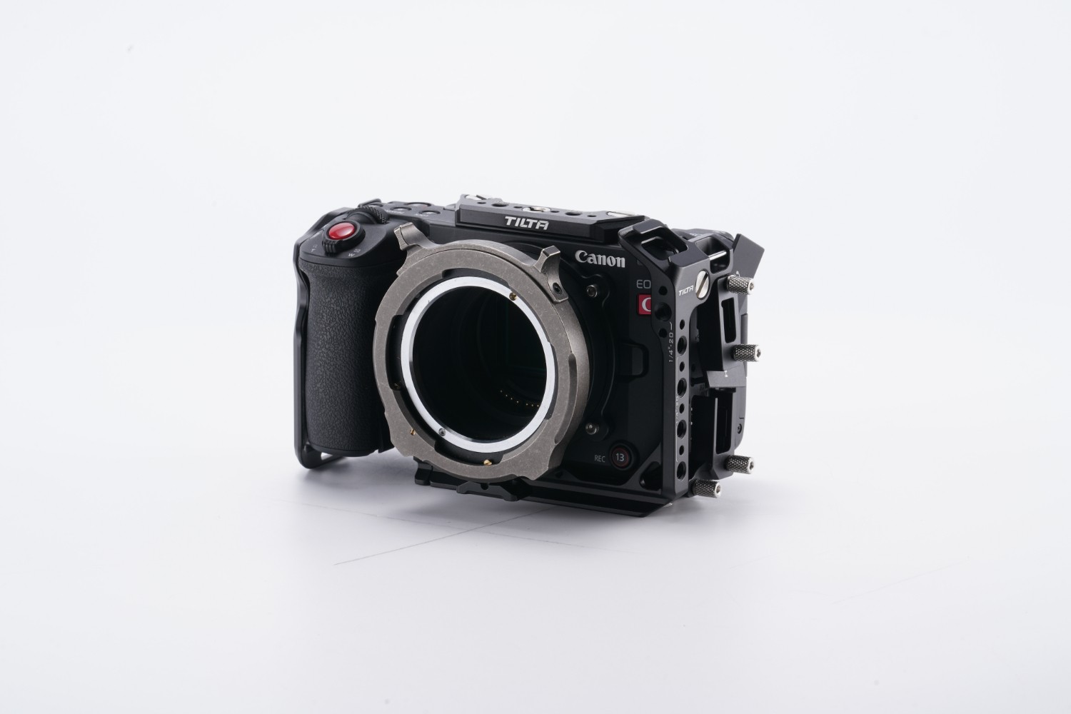 Introducing the RF to PL Mount Adapter Support for Canon C50/C80/C400. This adapter support mounts directly to the camera body via multiple screws for an incredibly secure connection. It then allows users to clamp onto the Tilta Canon RF Mount to PL Mount Adapter with Adjustable Back Focus in order to provide additional support.