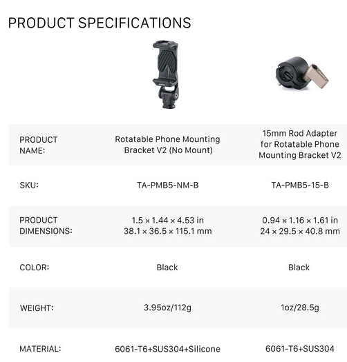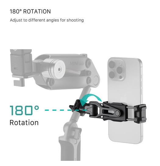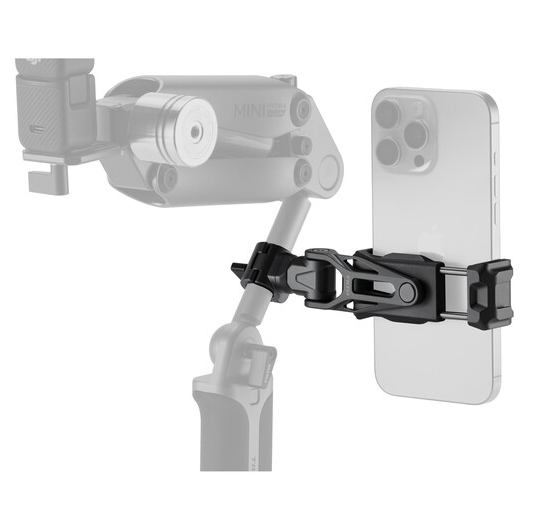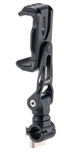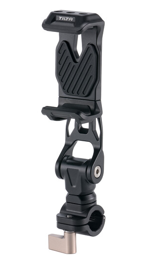 The Tilta TA-PMB5-15K-B Rotatable Phone Mounting Bracket V2 with 15mm Rod Mount is a professional smartphone clamp (fits 3–3.8″ wide phones) with full 360° rotation and silicone-padded jaws, paired with a single 15mm rod adapter featuring anti-twist locating pins – ideal for mounting your phone as a director’s monitor, wireless receiver display or gimbal counterweight directly onto any 15mm LWS rod rig or the Hydra Alien Mini center arm.