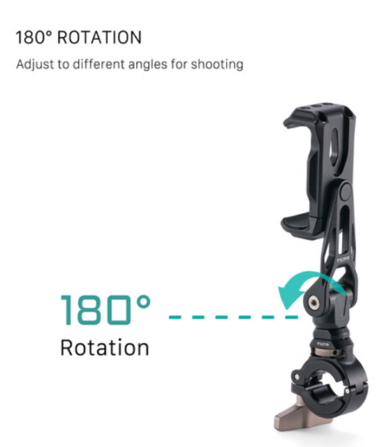 The Tilta TA-PMB5-HBK-B Rotatable Phone Mounting Bracket V2 with Handlebar Mount is a rugged, 360° rotating aluminum phone clamp (fits devices 3–3.8" wide) that securely attaches to bicycle, motorcycle or scooter handlebars via a rock-solid handlebar adapter. Perfect for filmmakers, vloggers or action creators who need a stable, portrait-to-landscape phone mount for POV riding shots, time-lapses, or live streaming.
