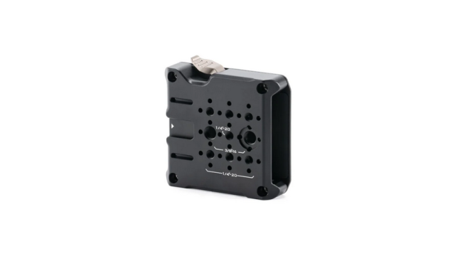 This side plate supports effortless transitions between horizontal and vertical configurations, serving as a bottom plate when mounted vertically. Its thoughtful design includes specifically positioned threads to align the baseplate perfectly with the optical center of the lens, ensuring precision for professional setups.