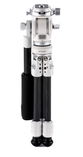 Designed for versatility, the VT03 features a working height range from 6 to 13.7 inches and folds down to just 11.1 inches, making it ideal for travel and compact shooting environments. The two-section legs use a twist-lock mechanism and support three adjustable leg angles (22°, 55°, and 82°), allowing stable setup on uneven surfaces. The fluid head supports smooth 360° panning and +90° to -60° tilting, and includes an Arca-type quick release plate for fast camera mounting.